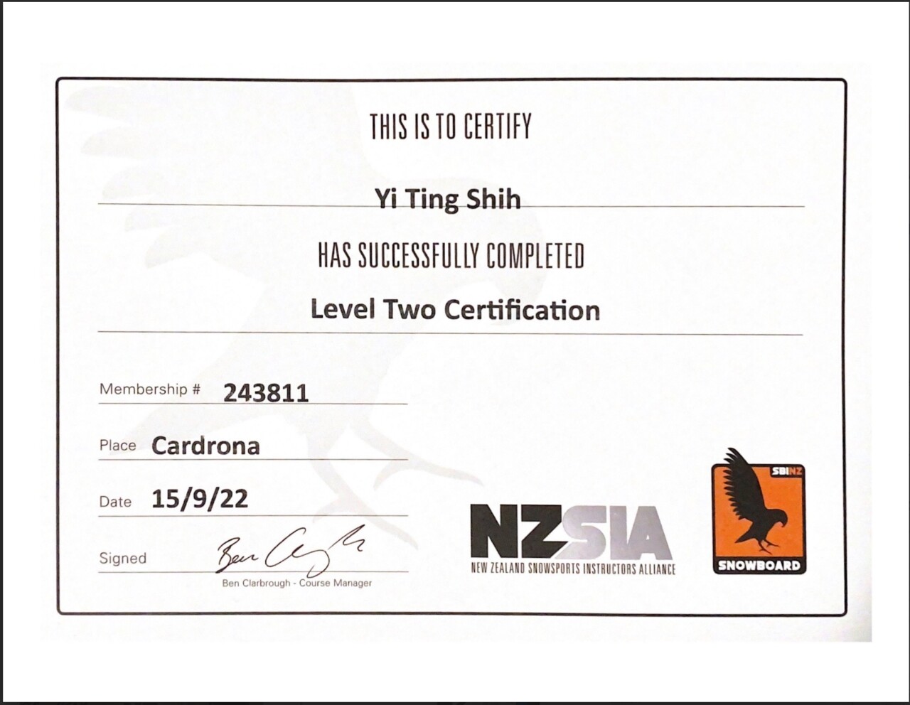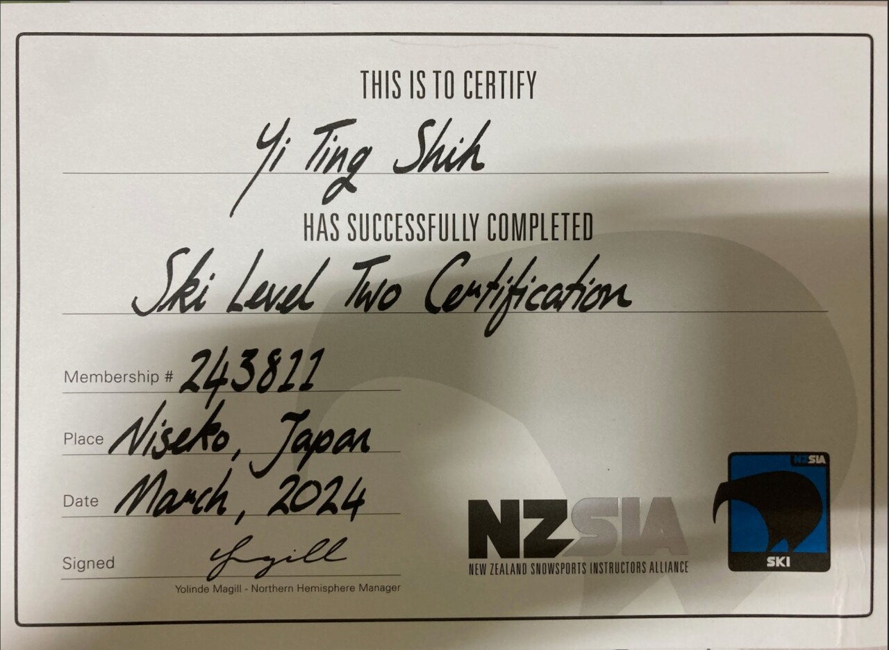 期間不斷參加訓練並累積教學經驗,並持續考取更高等級的證照,期待為大家的滑雪旅程帶來滿滿的收穫。